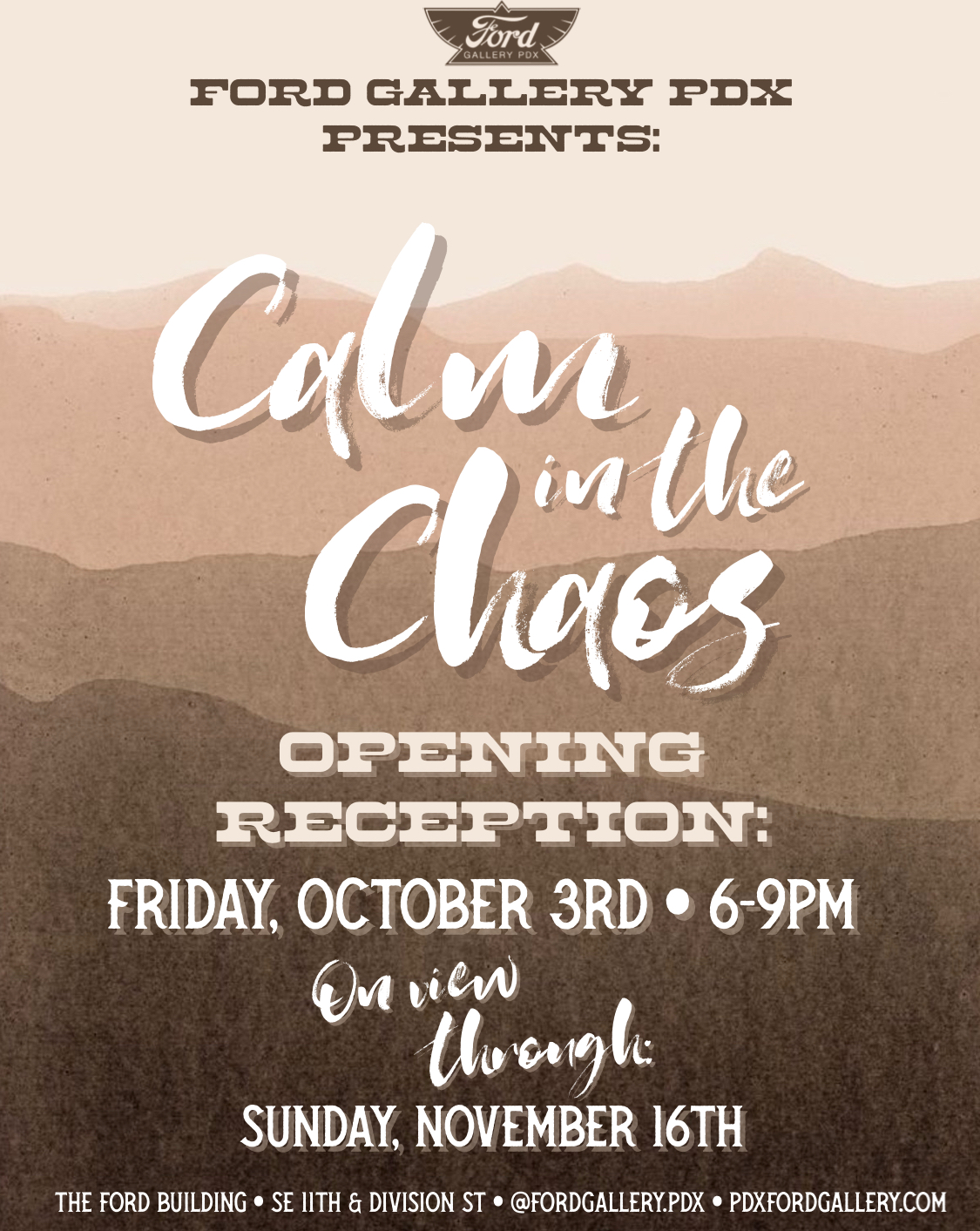 Friends and art lovers! Join us Friday, October 3rd for Calm in the Chaos, a group show at FGPDX. This luxurious collection of art will help calm the nerves in these hectic times. Slow down, chat with friends, and explore your new favorite work! 6-9PM inside the Ford Building.