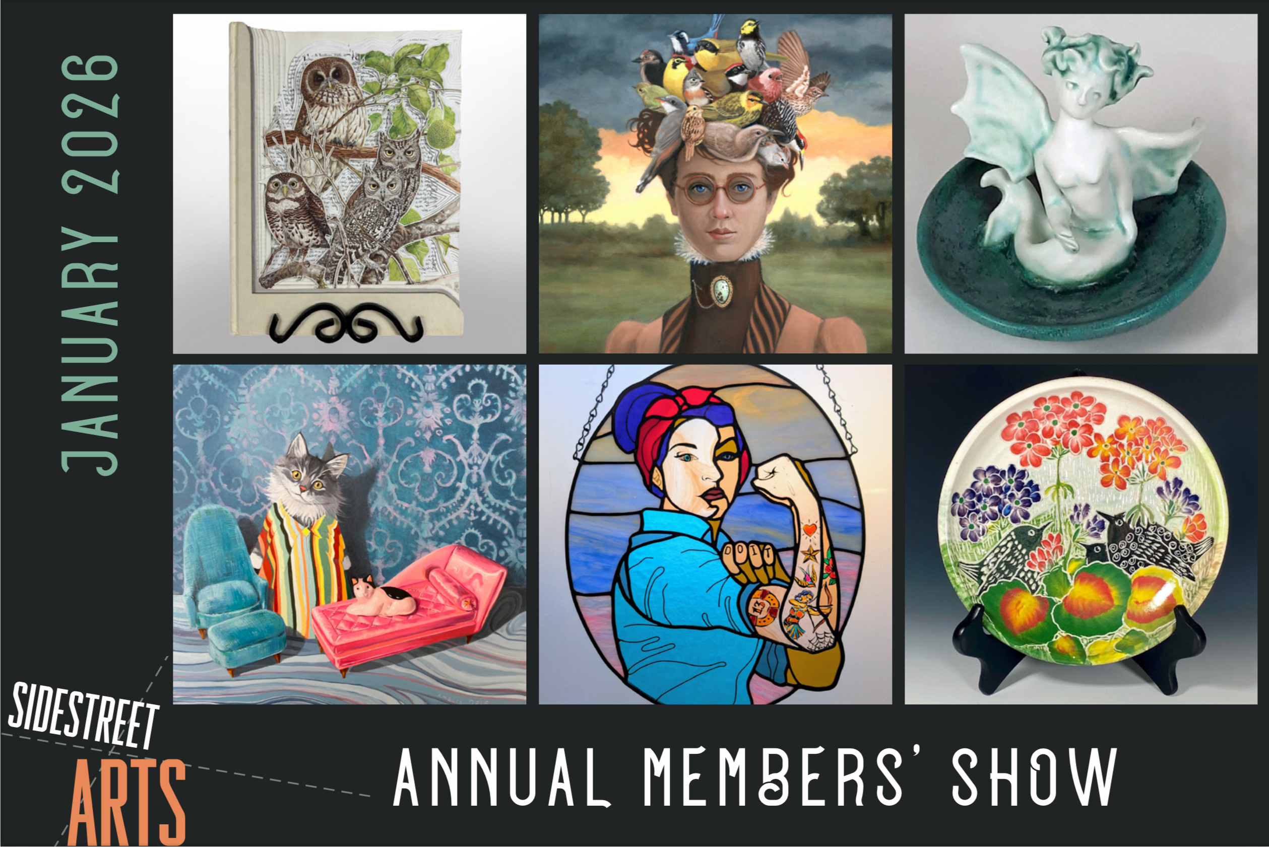 About the show: We are pleased to present this upcoming annual exhibition featuring the recent work of our members who are the heart of this unique venture. Sidestreet Arts mission is to operate a visual arts venue that promotes, encourages, and supports the work of its members and guest artists. We are a long-standing, collective gallery currently comprised of 6 member-owners who volunteer our time to create a welcoming creative space within which to show our art as well as that of other makers. We are proud to represent local artists, and strive to enrich our Pacific Northwest community by elevating its collective voices, inspire others through creativity and connect to one another.